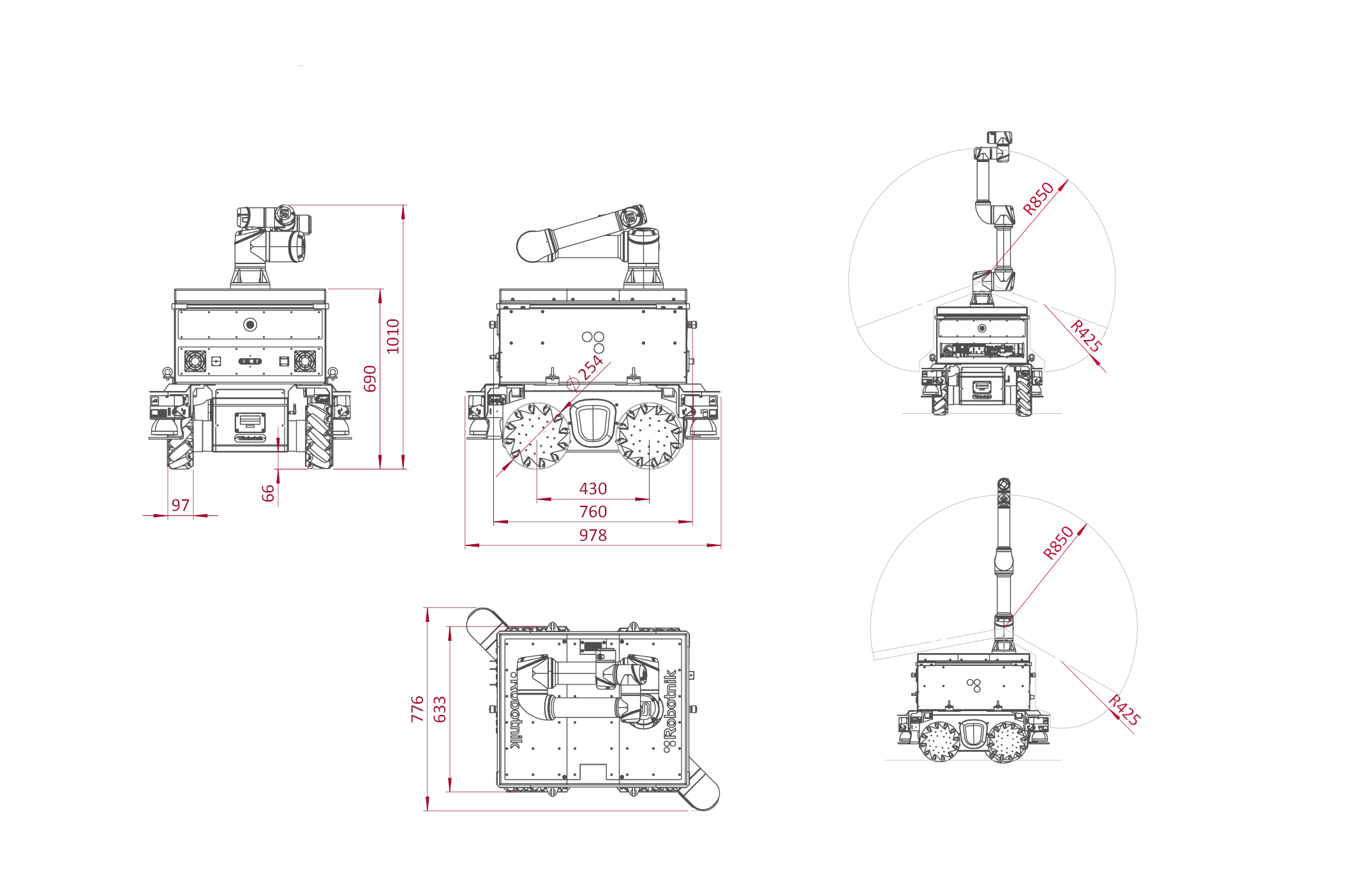 - Reach: 850 mm