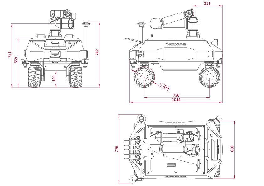 It stands out for being the only outdoor omnidirectional robotic platform available in the market. Its modular all-terrain base, equipped with omnidrive kinematics, ensures efficient movement even on uneven terrain.