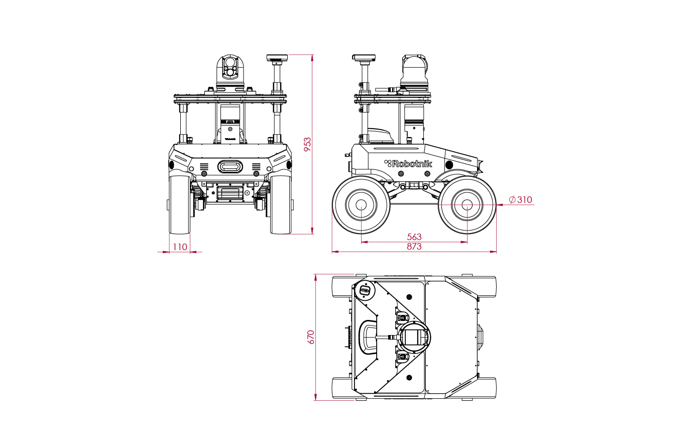 RB-WATCHER XL is an advanced version of Robotnik’s inspection and security robot, developed to meet the needs of environments and applications that, by their nature, demand greater autonomy, robustness, and mobility. Its main differences compared to the RB-WATCHER lie in a larger chassis and all-terrain wheels, which enable it to overcome obstacles up to 14 cm, offering superior mobility and stability even on uneven surfaces.