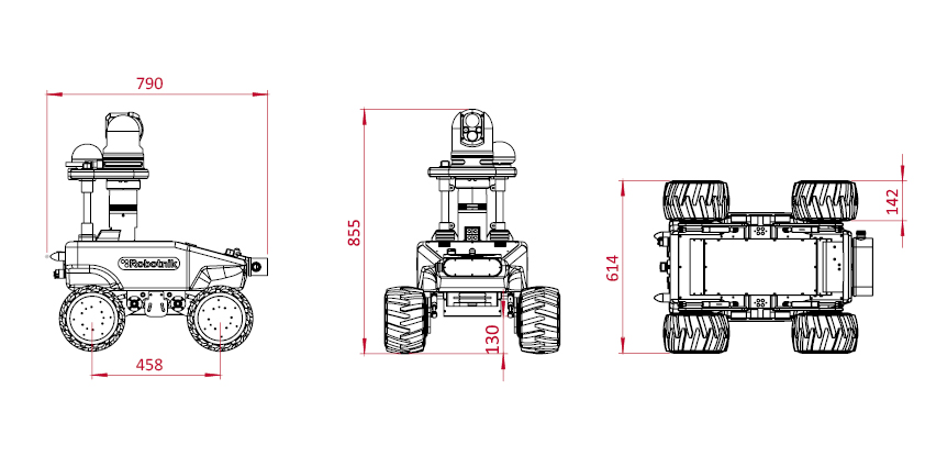 RB-WATCHER XL is an advanced version of Robotnik’s inspection and security robot, developed to meet the needs of environments and applications that, by their nature, demand greater autonomy, robustness, and mobility. Its main differences compared to the RB-WATCHER lie in a larger chassis and all-terrain wheels, which enable it to overcome obstacles up to 14 cm, offering superior mobility and stability even on uneven surfaces.